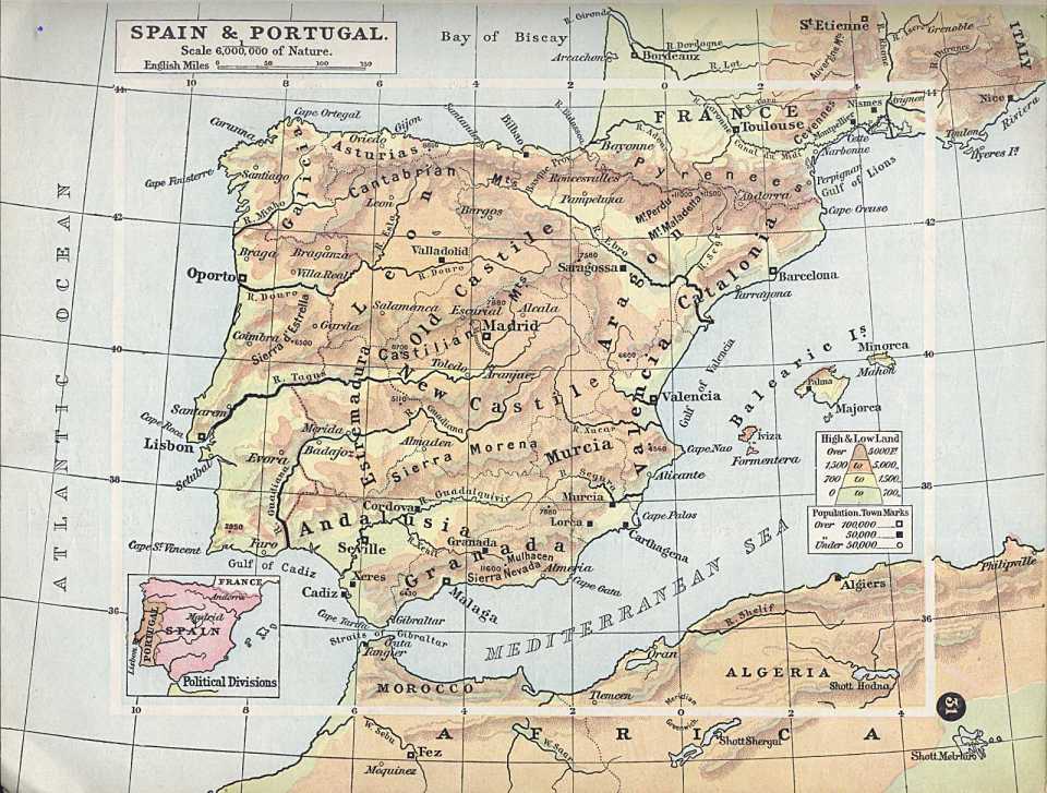 Map of Spain and Portugal 1900
