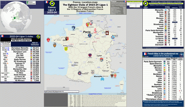 France: 2023-24 Ligue 1 – Location-map with 3 Charts