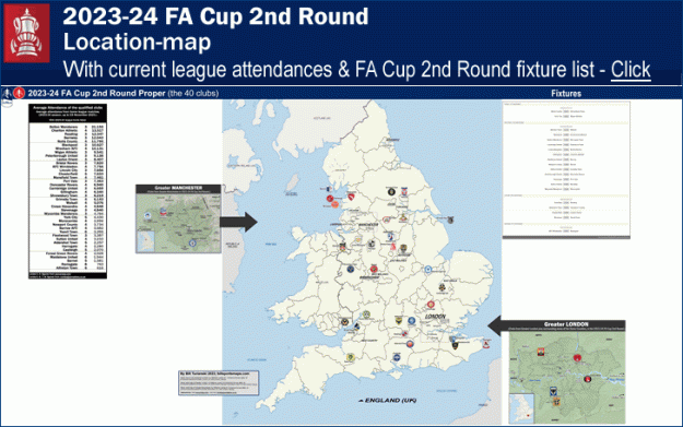 2023-24 FA Cup, 2nd Round Proper: Location-map, with fixtures list & current league attendances