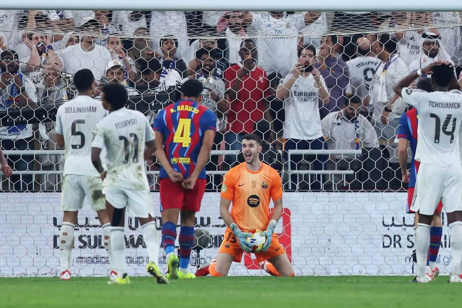 “Football is wild sometimes, and this was one of those times. A night that didn’t always make sense but was a lot of fun ended with every player on the pitch inside the Barcelona penalty area and the ball dropping through the crowd to Raúl Asencio, standing there on the edge of the six yard box. The board had gone up with six minutes on it, those six minutes had passed and now here it was, his moment and another twist: the chance to somehow take the Super Cup final to a penalty shootout. Instead, with the clock on 96.43 Asencio headed at Joan García. On his line, the goalkeeper grabbed the shot and held on hard; his team had done the same, two goals from Raphinha and another from Robert Lewandowski enough to take the trophy, goals from Vinícius Júnior and Gonzalo García not enough to take it from them. …”