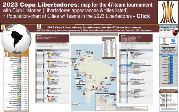 2023 Copa Libertadores: location-map for the 47-team tournament, with Club Histories
