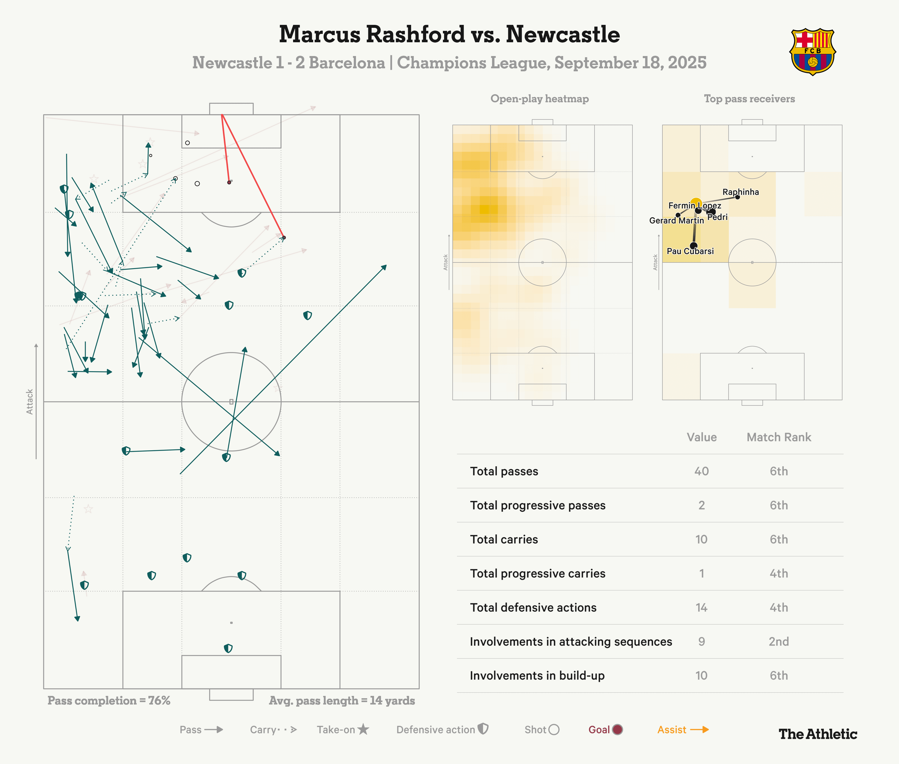 “Barcelona opened up their 2025-26 Champions League campaign with a 2-1 win at St James’ Park against Newcastle United. The opening 45 minutes were very much a half of two halves. Newcastle, in typical fashion, started aggressively, with the front three pressing the Barcelona defence and winning possession in some promising positions, to the delight of the home fans. The pace of Anthony Elanga, in particular, was a consistently dangerous outlet for Eddie Howe’s side, with their best chance of the half coming when he motored down the right flank and crossed for Harvey Barnes, whose shot was saved. …”