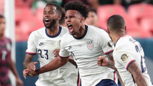 “Miles Robinson headed home an extra-time winner as the United States beat Mexico 1-0 in the 2021 Gold Cup final Sunday night at Allegiant Stadium in Las Vegas. Matt Turner made a stellar save just after 10 minutes — his 20th of the tournament — from a goal-bound Rogelio Funes Mori header to keep the score level early. The U.S. missed a great chance to take the lead at 25 minutes when, after dispossessing Mexico in its own half, Sebastian Lletget sprang Paul Arriola in the area, but his shot came back off the post with only the keeper to beat. Despite having the better of the shots and possession, Mexico failed to score as a scrappy U.S. side went into halftime tied 0-0. …”