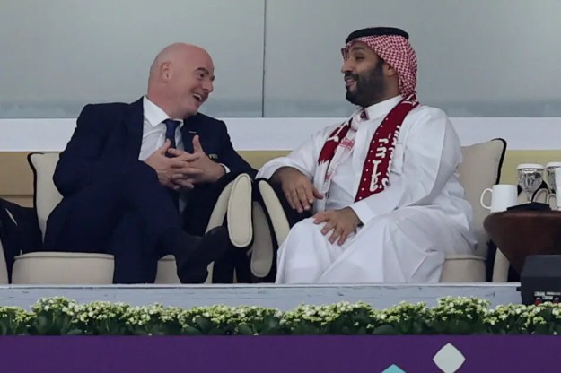 Gianni Infantino, the FIFA president, with Mohammed bin Salman, the crown prince of Saudi Arabia, at the 2022 World Cup.