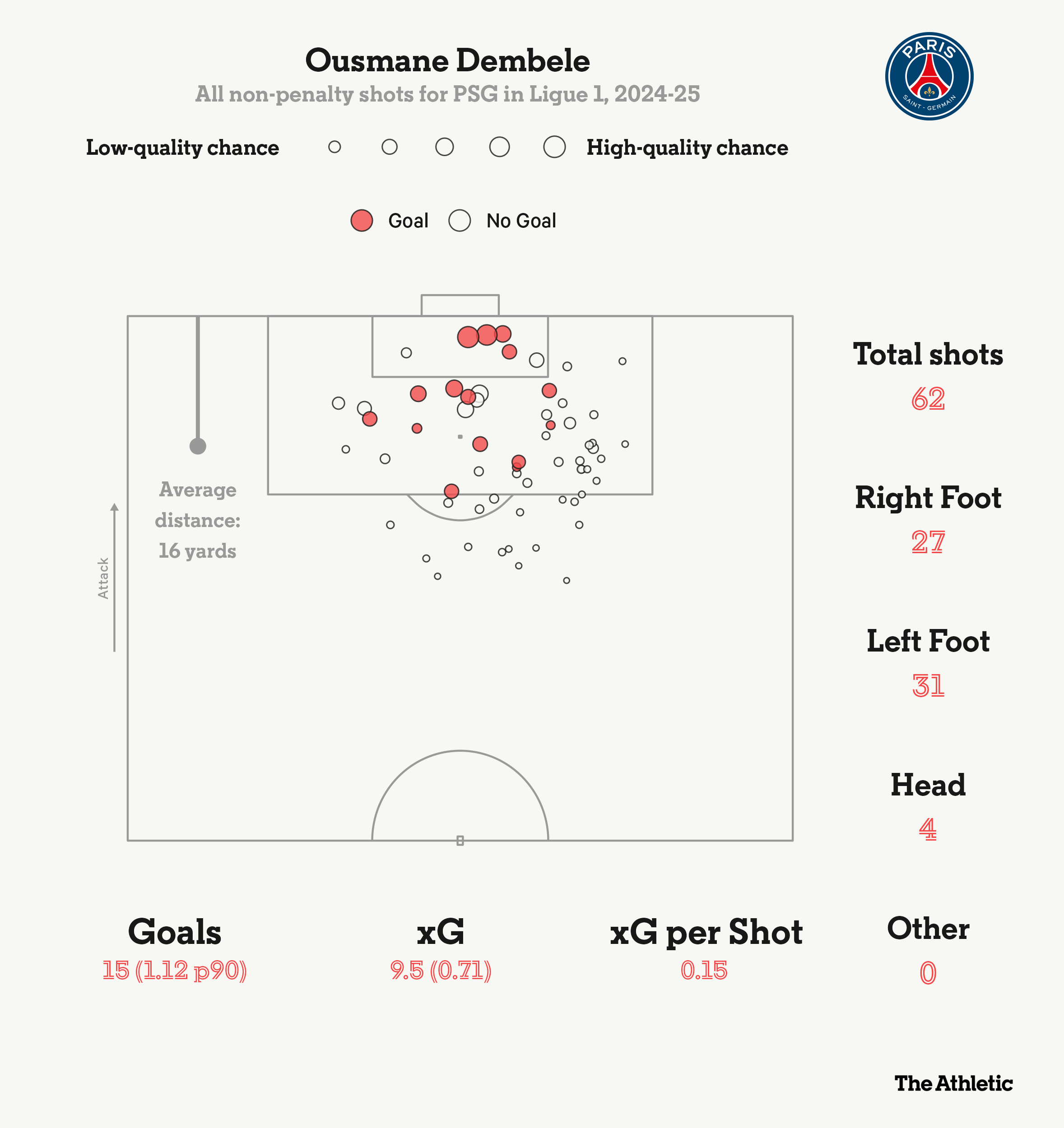 “Mikel Arteta had the audacity to call it an ‘individual moment’. He was talking about the only goal in Paris Saint-Germain’s 1-0 win at the Emirates in the Champions League semi-final first leg. Inside four minutes, Ousmane Dembele met Khvicha Kvaratskhelia’s cutback with a first-time finish that curled around bodies and beyond David Raya. It encapsulated the No 9 instincts that Luis Enrique has coaxed out of Dembele after repositioning him from a winger. …”