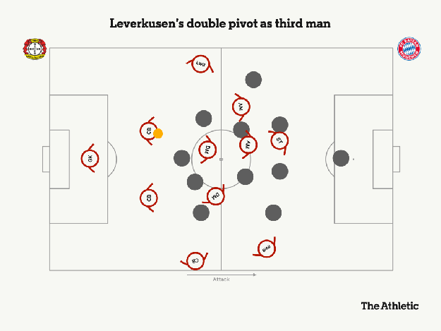 “When Xabi Alonso played for Pep Guardiola’s Bayern Munich, he usually operated as a lone defensive midfielder, presumably because he was so handsome that team-mates were too intimidated to stand next to him. Not many clubs play that way now. A decade of increasingly sophisticated pressing has forced sides that want to build up through the middle (as opposed to going over or around the other team) to put two bodies on their defensive midfield line. … Their secret weapon was third-man combinations in the double pivot. …”